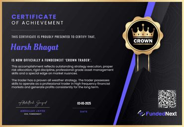 Hello! My name is Harsh, also known as Kabir. I’ve been trading for 5 years, specialising in Forex, Futures and CFDs, with a focus on Dow Jones and Russell. My goal is to help traders enhance their skills, grow, and achieve success in the financial markets through personalised mentorship and a supportive community.